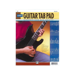 Four staves of standard notation and TAB on 32 double sided sheets, 3-hole punched for ring binders.