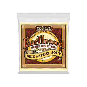 Ernie Ball Earthwood Silk & Steel Soft 80/20 Bronze acoustic guitar strings are made with an 80/20 bronze alloy wrap, along with a layer of silk between the wrap and steel core. The silk produces a more mellow sound and makes the string feel more comfortable while reducing finger noise. Gauges .011, .015, .022w, .030, .042, .052