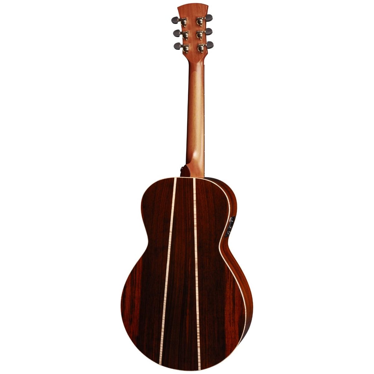 This pairing of fresh Solid Spruce and Solid Rosewood tonewoods produces a sound that is bright and "zingy," with excellent clarity. If you try to visualise a frequency graph, it would look like a smile: Strength in the low frequencies, falling off in the midrange, and then rising again at the top. This results in the classic Spruce / Rosewood tone: Sparkling highs, rich bass notes and fabulous articulation across the spectrum. As you would expect however, the smaller size of the Parlour model does reduce some of the depth of bass so prominent on larger Rosewood models, but this is more than made up for by its unique mid-range bite.