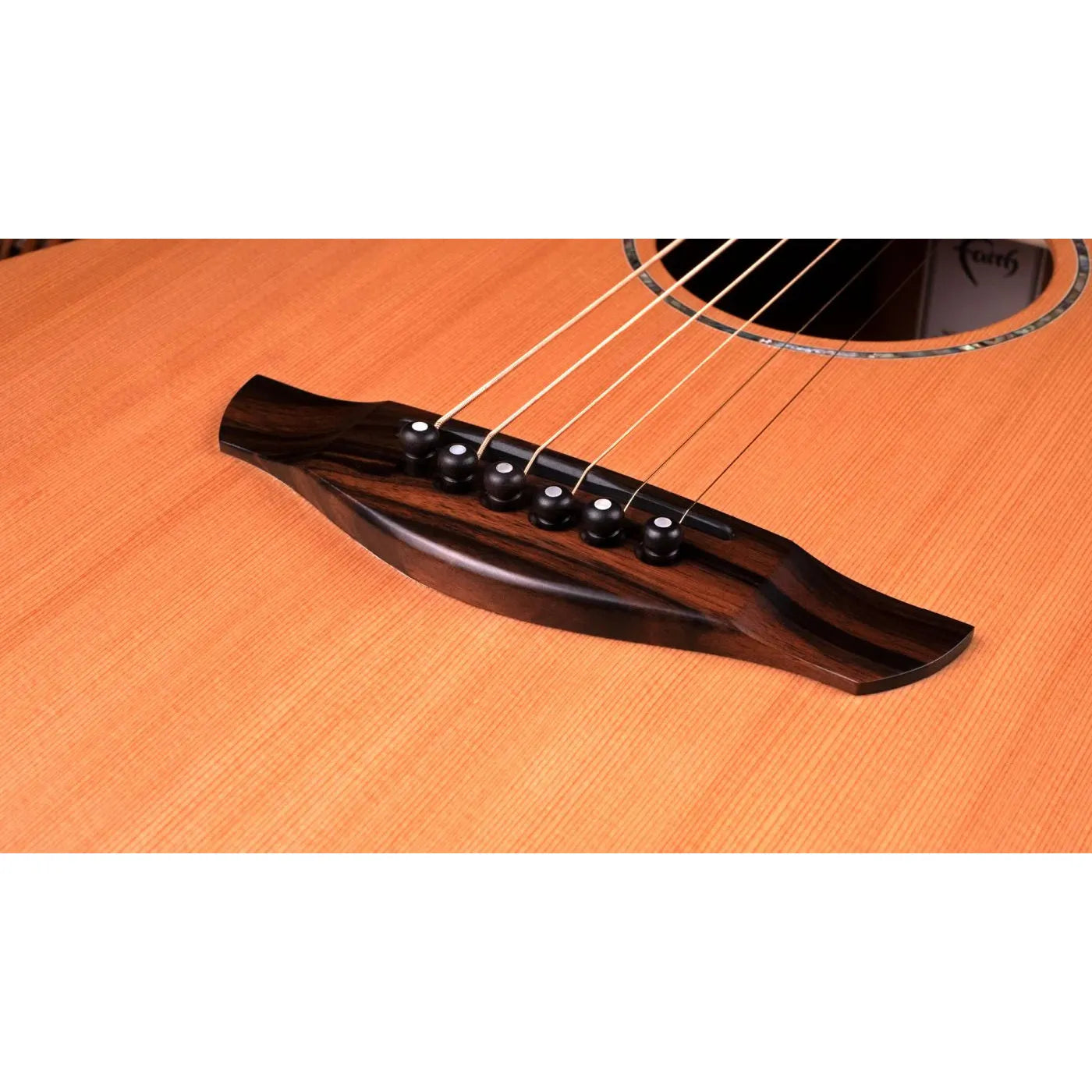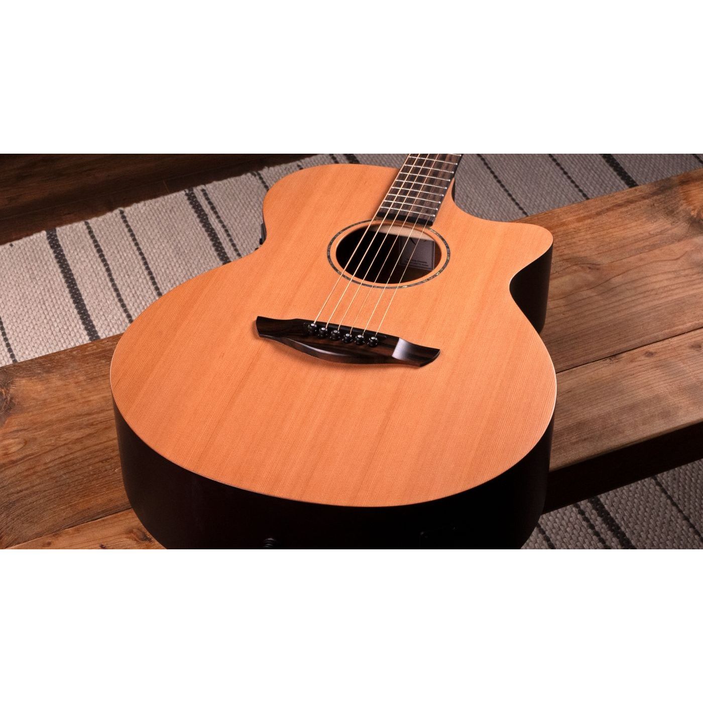 This Cedar-topped Venus Naked model delivers the same rich sonic performance you would expect from an all-solid Faith Naked guitar. However, the exciting difference is the Solid Cedar top. This highly respected tonewood, widely used in the classical guitar world, offers the player a darker, more mellow tone, which opens up a whole range of new musical possibilities. Aesthetically, there is further enhancement by way of a richly-stained mahogany back and sides, the trademark satin finish, and special black fittings and hardware.