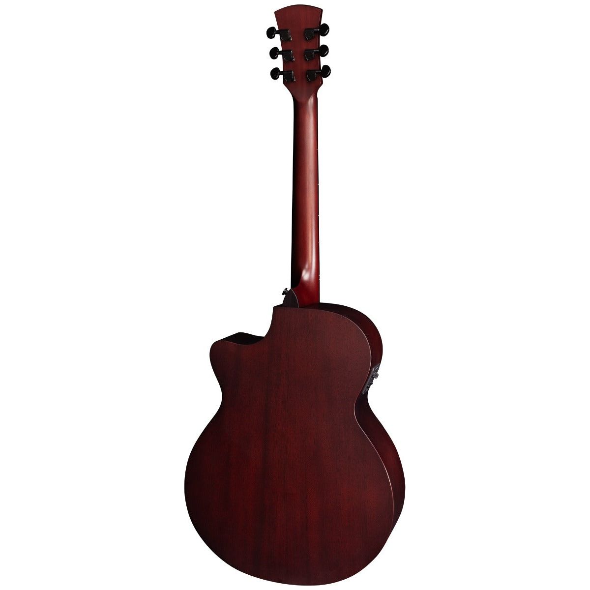 Cedar is often used on classical guitar tops as the slightly less stiff structure produces an initially darker tone than Spruce and when it’s paired with the naturally mellow tones of Mahogany, the resulting guitar is aurally darker and richer. True to its ‘Naked’ name, all the woods show their natural grain patterns, with only the electronics breaking up the show of beautiful simplicity.