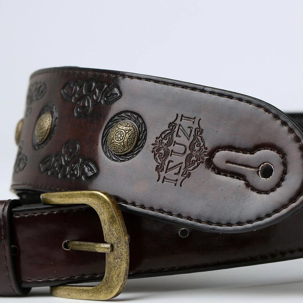 Isuzi VPB20-6 Leather Guitar Strap - Dark Red