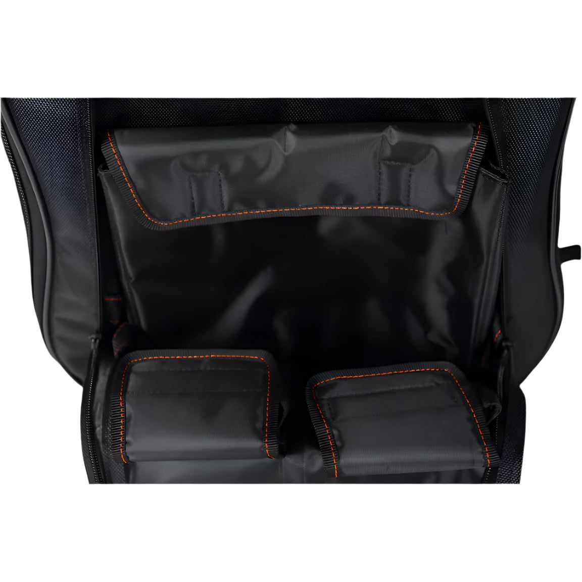 Accessories can be stored in the multiple front pockets, which include an organiser with padded tablet compartment, two phone/small tablet pockets, cable holder and elasticated tuner holder, with additional intergral headstock pocket for smaller items such as keys and strings.